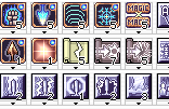 Abaixo, a lista de alguns ícones e seus efeitos, note que não é uma tabela feita para ser precisa: a lista exibe apenas um item como exemplo para o ícone, não necessariamente mostra todos os itens que exibirão o ícone.